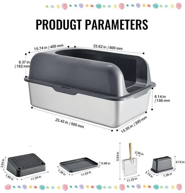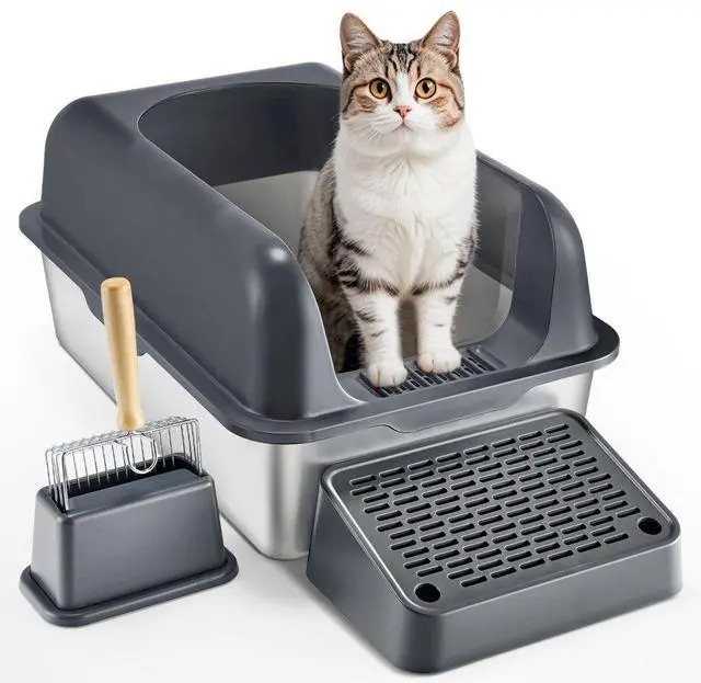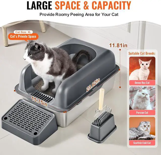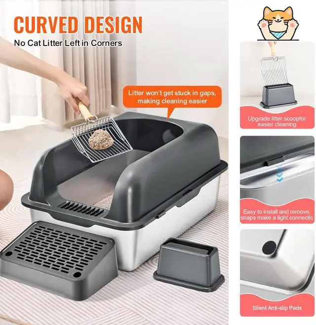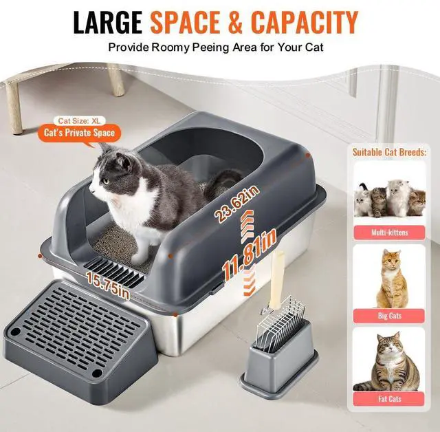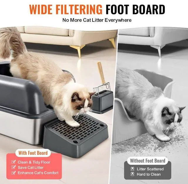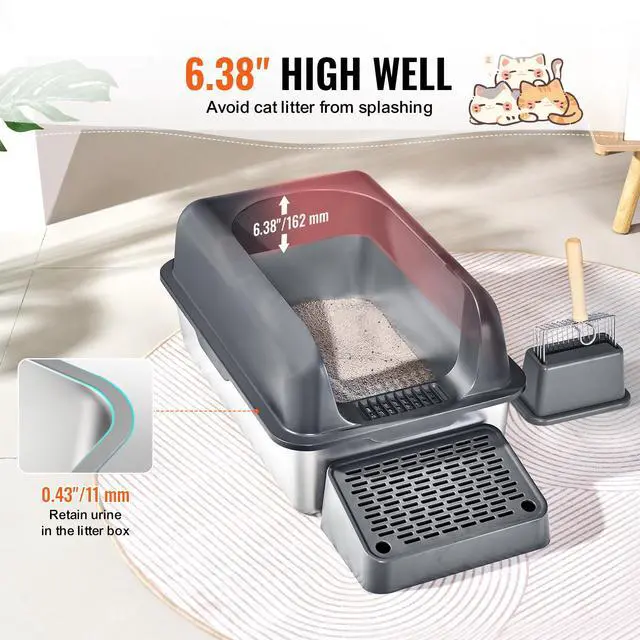 VEVOR 6 in Deep Cat Litter Box Odor-Free Litter Box with Filtering Foot Board