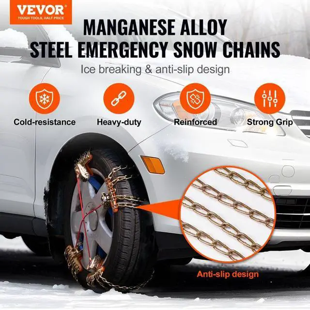 VEVOR 16 PCS Snow Chains Tire Width 8-8.8 in/205-225 mm for Car/Pickup/SUV/Truck