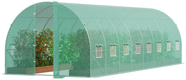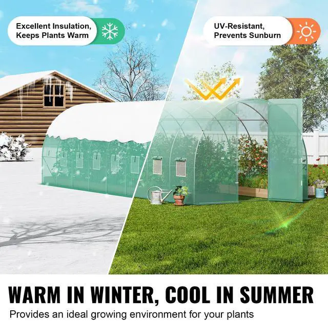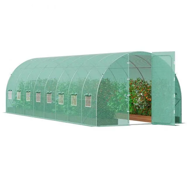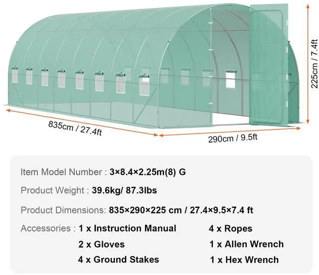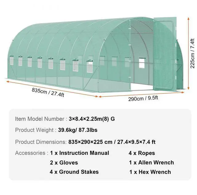VEVOR Walk-in Tunnel Greenhouse 27.38x9.5x7.38ft Galvanized Frame PE Cover Green