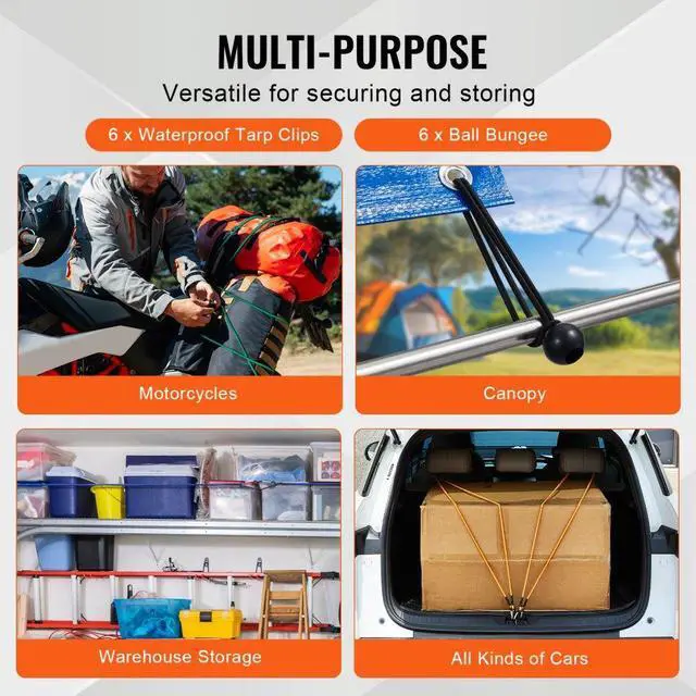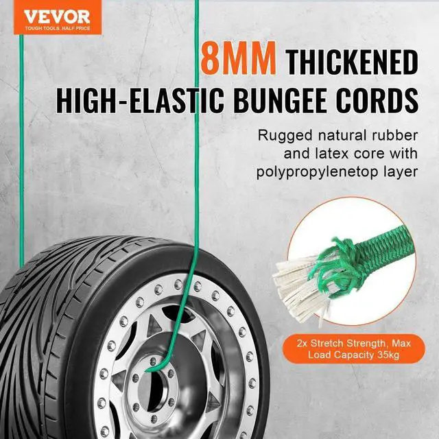 VEVOR 30 Pcs Bungee Cords Set 8mm Heavy Duty Bungee Straps with Steel Carabiners