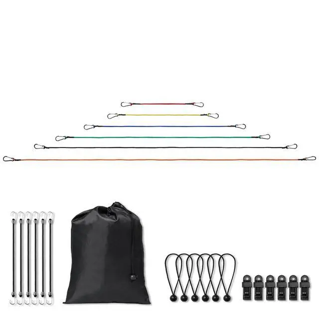 60 in: 3 m,Product Dimensions: 1820 x 25 x 22 mm,Lengths and Colors:,10 in: 0.5 m (Mini Ties and Canopy Ties),48 ±1 in / 1.22 m: 2.4 m (Green) x 2,36 ±1 in / 0.91 m: 1.8 m (Blue) x 2,Maximum Stretch:,72 in: 3.6 m,Hook Diameter: 5.8 mm,Product Weight: 1.5 kg,24 in: 1.2 m,60 ±1 in / 1.52 m: 3 m (Black) x 2,18 ±1 in / 0.46 m: 0.9 m (Red) x 2,Hook Type: Carabiner,32 in: 1.6 m,72 ±1 in / 1.83 m: 3.6 m (Orange) x 2,36 in: 1.8 m,10 ±1 in / 0.25 m: 0.5 m (Black, Mini Ties, Diameter 4 mm) x 6,Quantity: 30 pcs,Material: Polypropylene + Rubber,18 in: 0.9 m,Maximum Load: 35 kg,Hook Material: Aluminum,48 in: 2.4 m,Model: DJ-CB002,Surface Treatment: Smooth,Round Diameter / Flat Width: 8 mm,24 ±1 in / 0.61 m: 1.2 m (Yellow) x 2