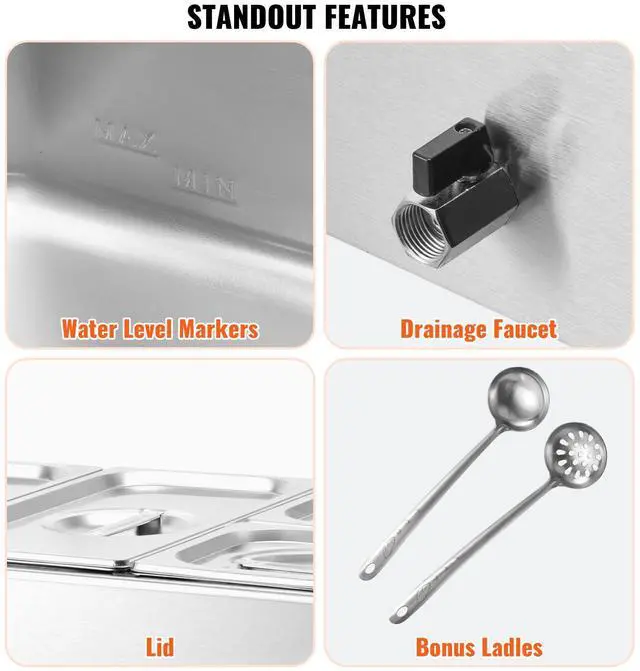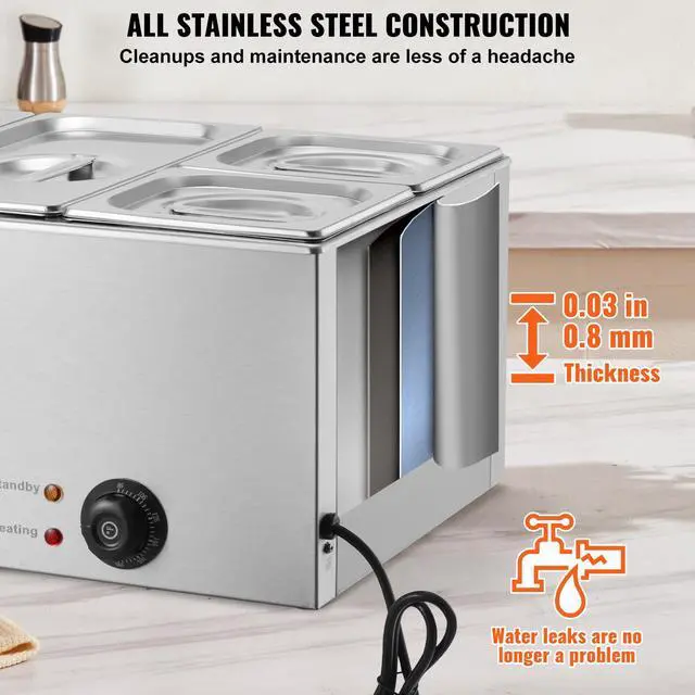 VEVOR Commercial Electric Food Warmer 4-Pan Countertop Buffet 16.4QT Bain Marie