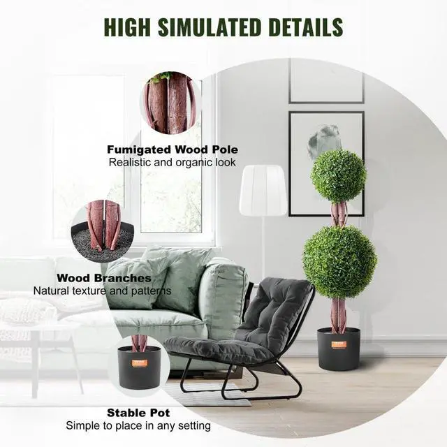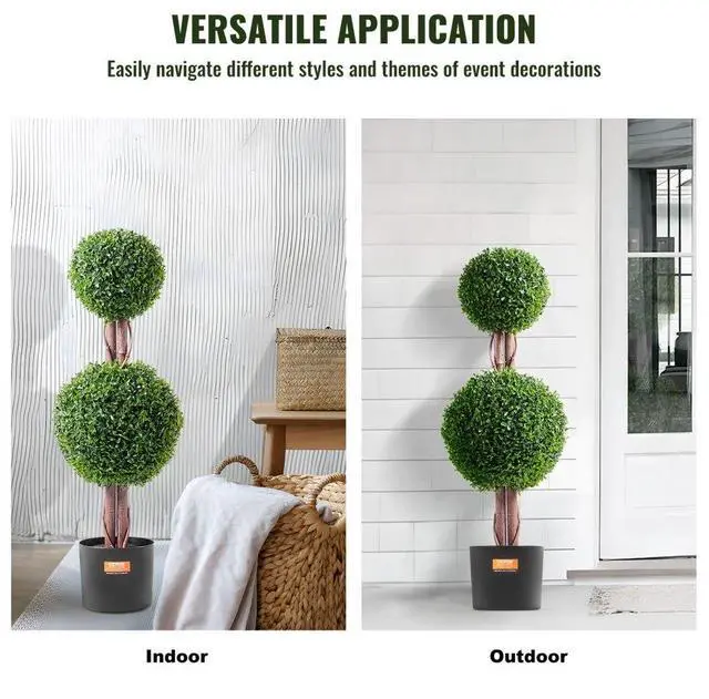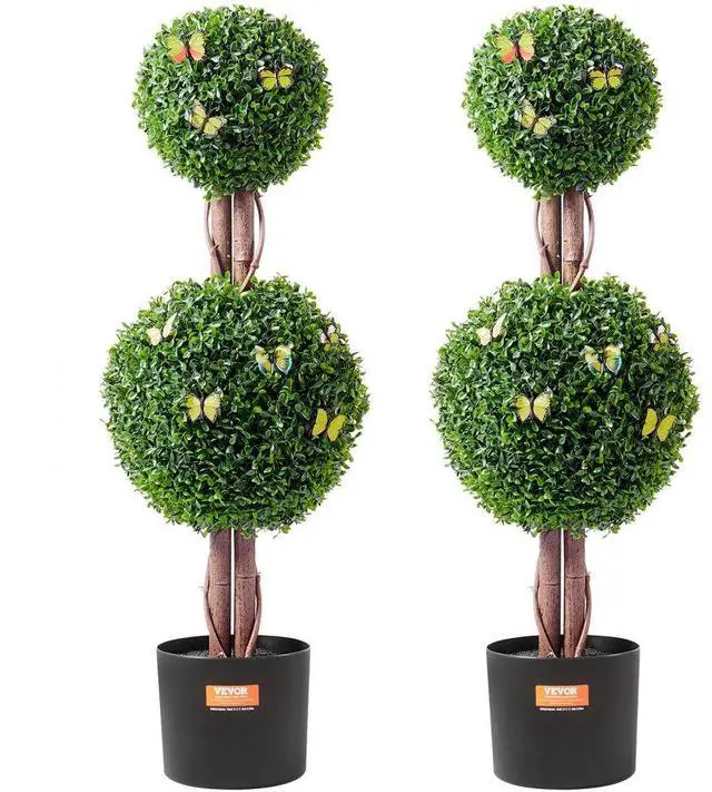 VEVOR 2 Pack 3' Artificial Boxwood Topiary Tree Faux Plant UV Decor In/Outdoor
