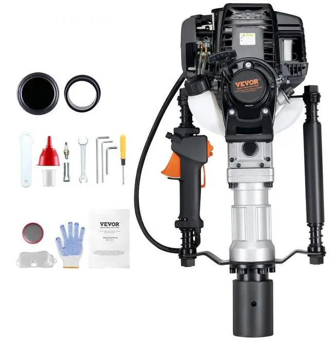 VEVOR 37.77cc Gas-Powered T Post Driver 4-Stroke Fence Piling Pounder w/ 2 Head