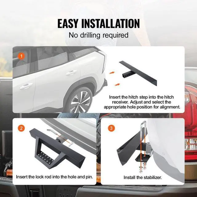 VEVOR Hitch Step for 2" Receiver Universal Trailer Tow Rear Bumper Guard Steel