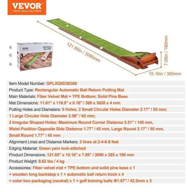 VEVOR 5 Hole Golf Putting Mat Indoor Golf Putting Green Golf Training Aid