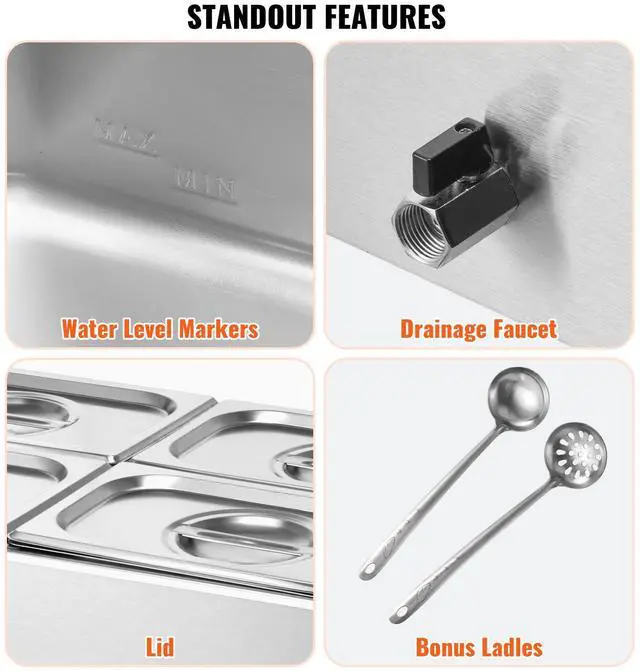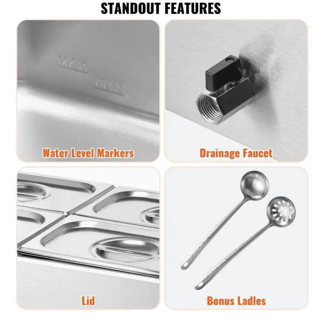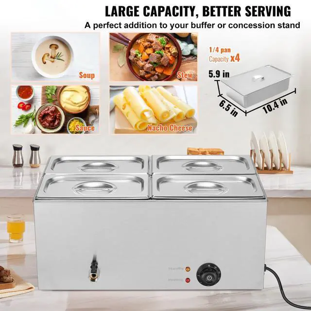VEVOR Commercial Electric Food Warmer 4-Pan Countertop Buffet 15.9QT Bain Marie
