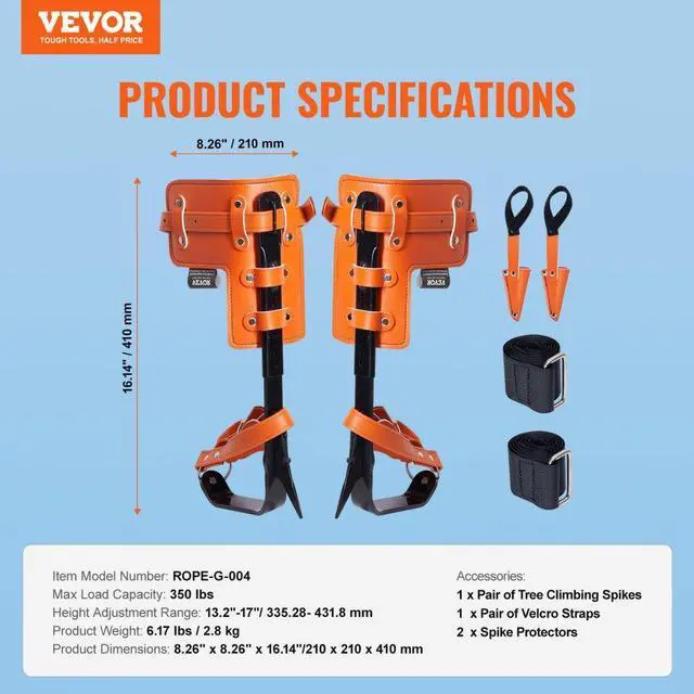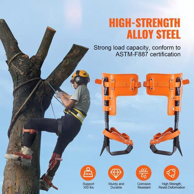 VEVOR Tree Climbing Spikes Climbing Spurs Alloy Steel Arborist Equipment Orange
