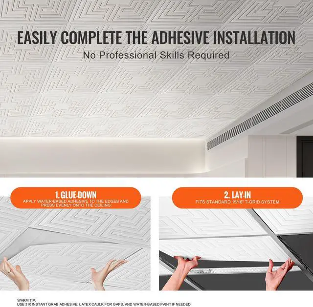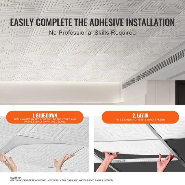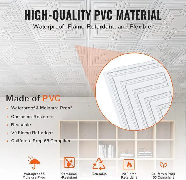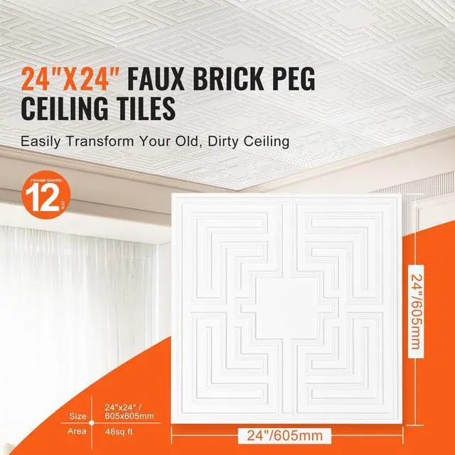 VEVOR Ceiling Tiles 12-Pack 24 x 24 in PVC Easy Installation White Echo Pattern