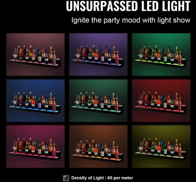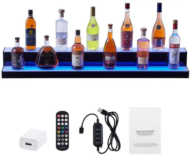 VEVOR LED Lighted Liquor Bottle Display Bar Shelf RF & App Control 48" 2-Step