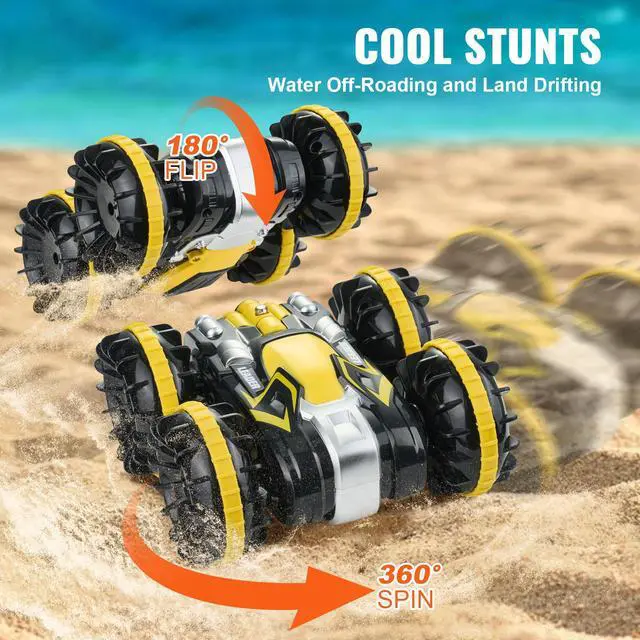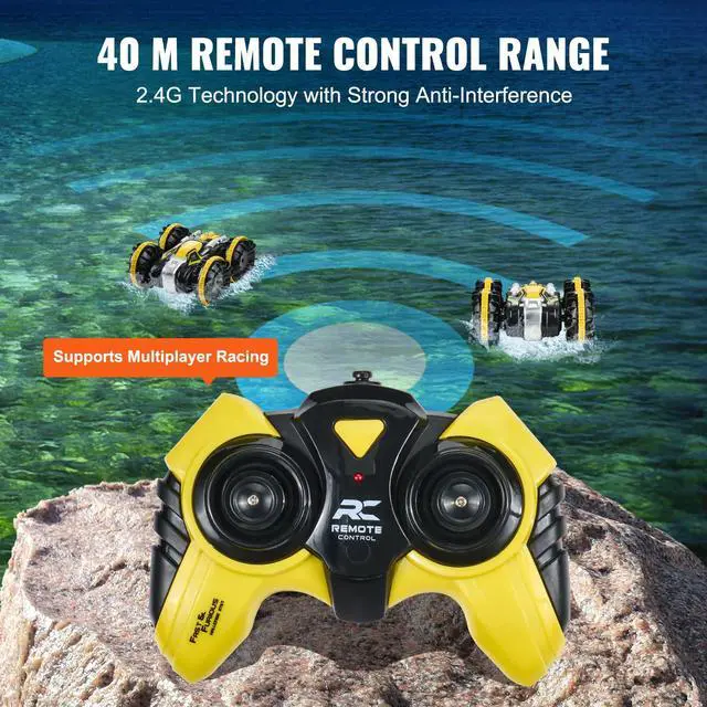 VEVOR Amphibious Remote Control Car Boat 2.4 GHz 4WD RC Boat Kids Adults Yellow