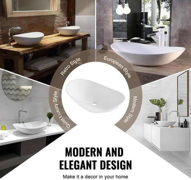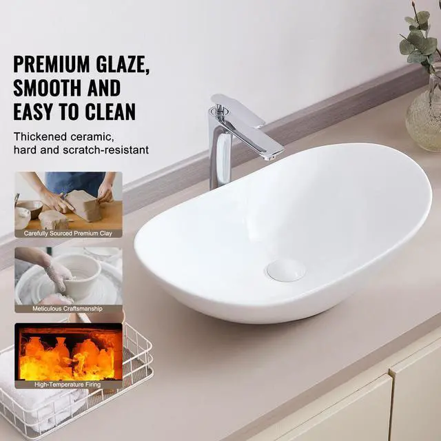 VEVOR Modern Ceramic Vessel Sink 23.3" x 14.2" Bathroom Vanity Bowl Countertop