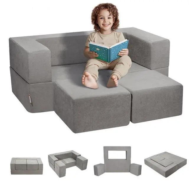 VEVOR Kids Couch, 4Pcs Modular Kids Play Couch, Toddler Couch Sofa Bed, Kids Chair Seat Playroom Furniture, Child Sectional Sofa with Removable Cover for Kids Girls & Boys, Grey