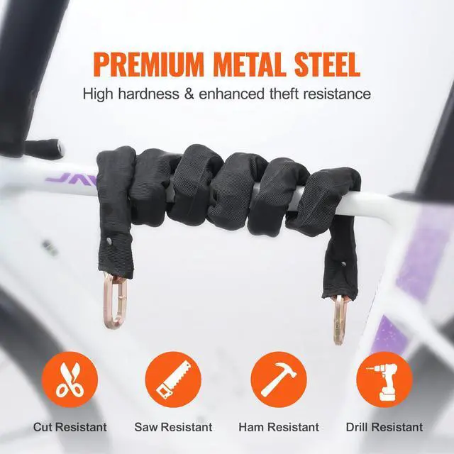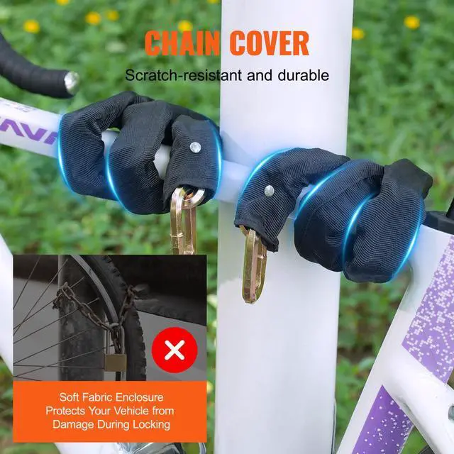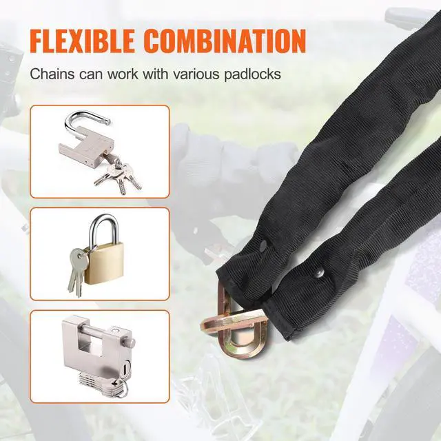 VEVOR Bike Chain lock 5.91 ft Safety Bike chain lock 9.5 mm thick black, suitable for electric bikes, motorcycles