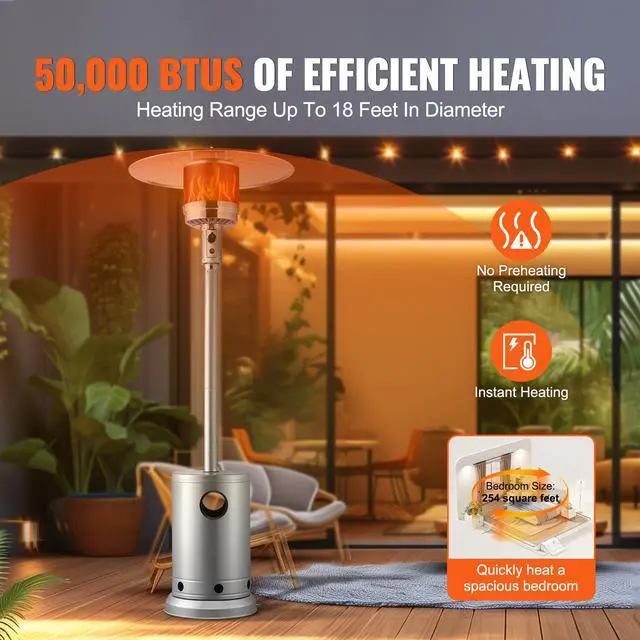 • VEVOR Propane Patio Heater 50000BTU Tall Hammered w/Round Table Outdoor Silver