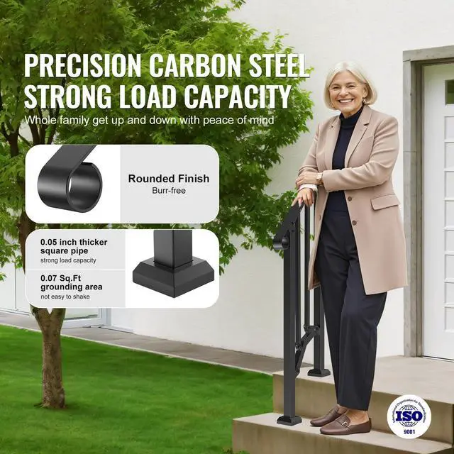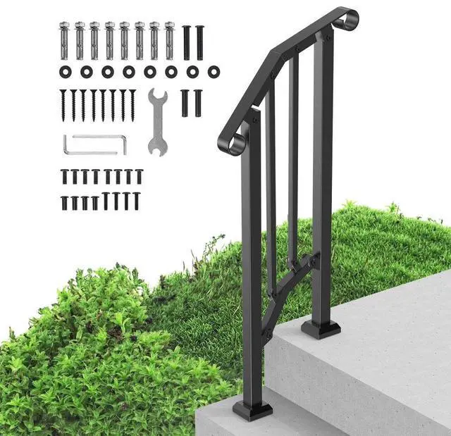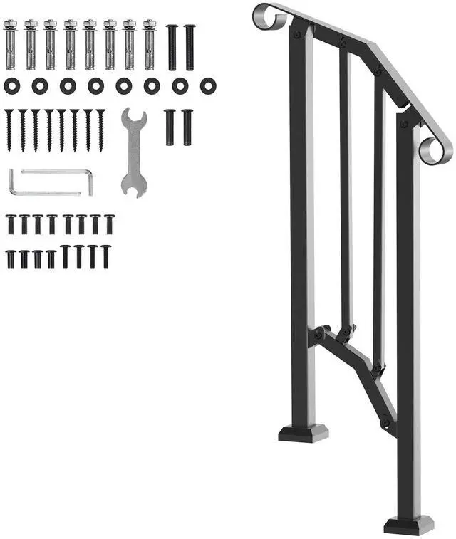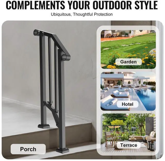 VEVOR 1-2 Step Handrails for Outdoor for Seniors Porch Deck Retro Arch Black