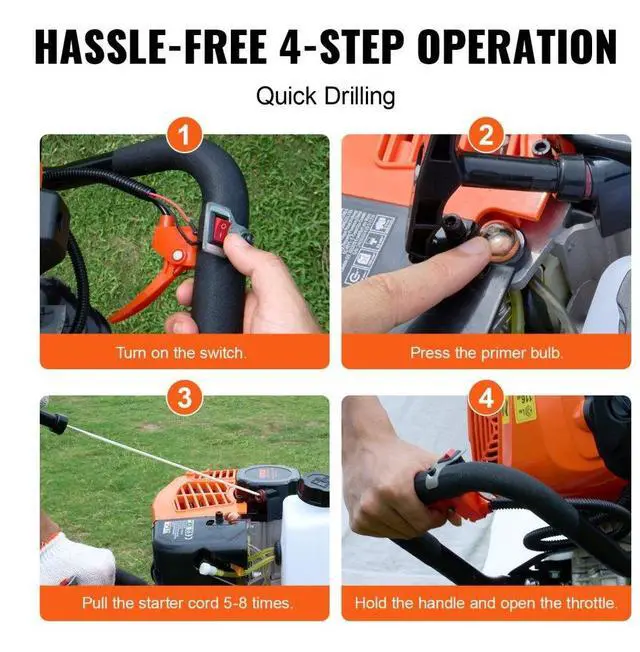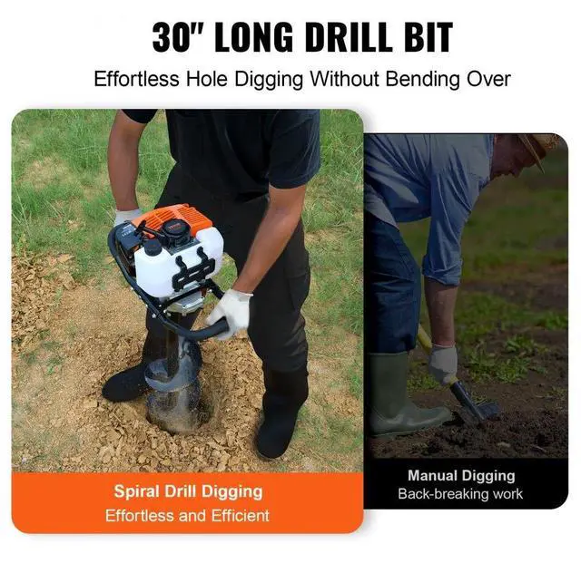 VEVOR Gas Post Hole Digger 63CC 2400W with 8 Drill Bits & 1 Extension Rod