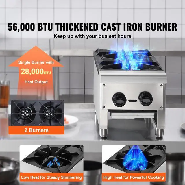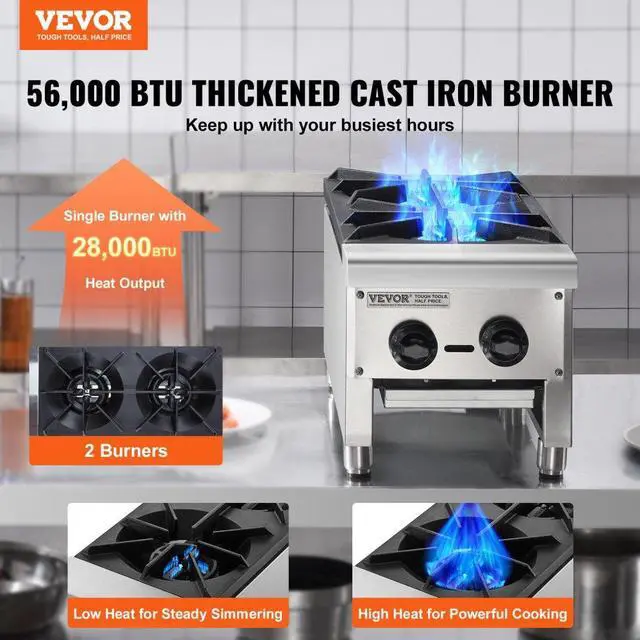 VEVOR Commercial Gas Range Stove 2 Burners Countertop Cooking Hot Plate Kitchen