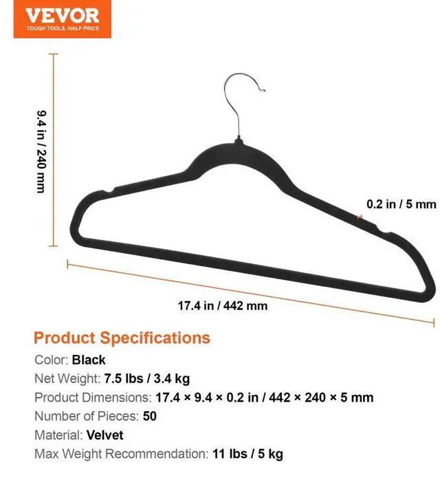 Number of Pieces: 50,Color: Black,Item Model Number: ZR048,Max Weight Recommendation: 11 lbs/5 kg,Material: Velvet,Product Dimensions: 17.4 x 9.4 x 0.2 in/442 x 240 x 5 mm,Net Weight: 7.5 lbs/3.4 kg