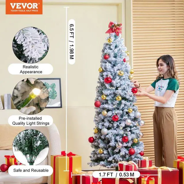 VEVOR Christmas Tree 6.5ft Prelit Flocked Xmas Tree with 250 LED Lights 814 Tips