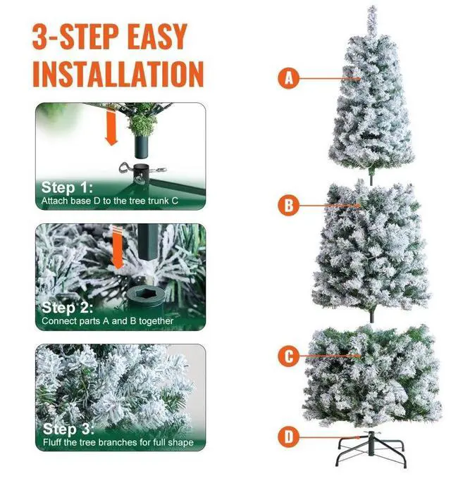 Number of Tips: 814,Item Color: Green + White Flocking,Metal Base Diameter: 17.7 in / 450 mm,Item Model Number: SX-2886S-6.5ft-NA,Light Type: Warm White LED Lights,Tips Material: PVC,Net Weight: 14.3 lbs / 6.5 kg,Number of LED Lights: 250,Product Size: 1.7 x 6.5 ft / 0.53 x 1.98 m