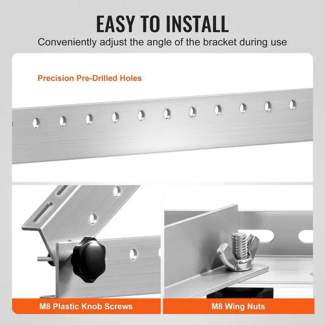Easy Installation: This solar panel mount bracket supports both horizontal and vertical installation. It features precision pre-drilled holes and includes practical accessories such as M8 plastic knob screws and M8 wing nuts, ensuring a quick and easy installation process.