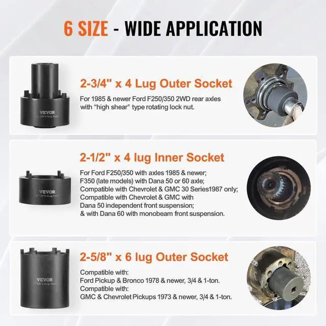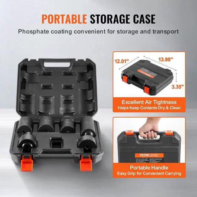 VEVOR Spindle Nut Socket Tool Kit 1/2 inch Drive 6 Piece Axle Hub Nut Socket Set