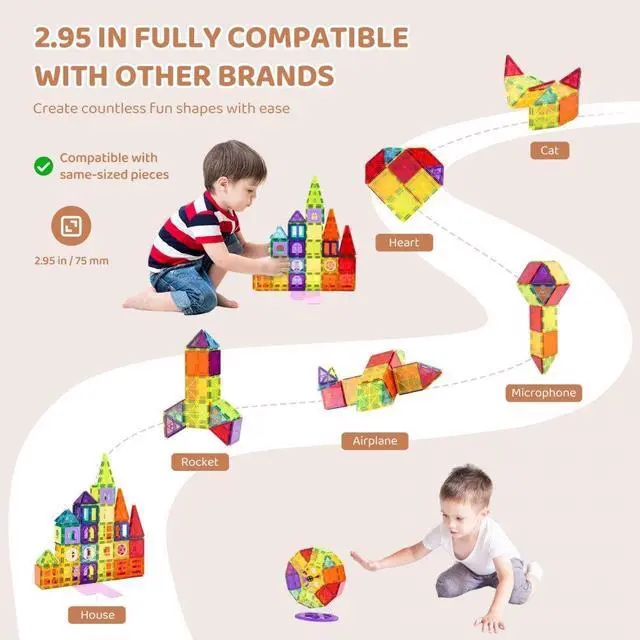 VEVOR Magnetic Tiles Magnetic Building Toy 181 PCS Magnet Blocks for Kids 3D Set