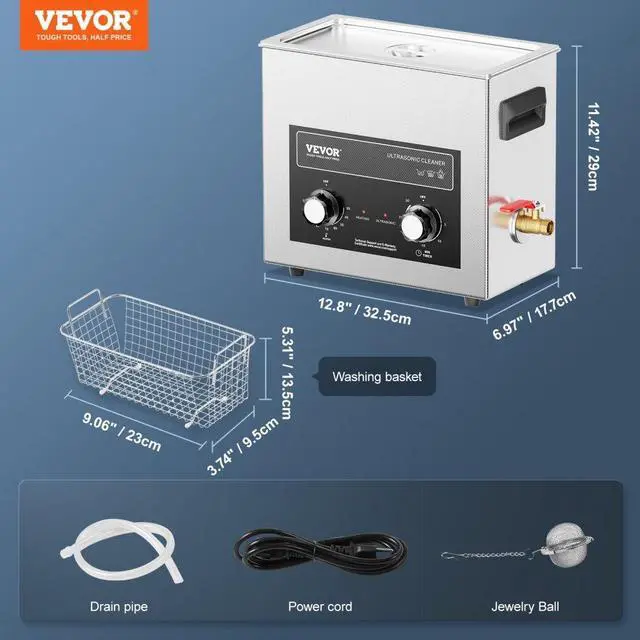 VEVOR 6L Ultrasonic Cleaner with Heater Timer & Basket, Professional Digital Sonic Cavitation Machine, 180W Cleaning Machine for Watch Instruments, Glasses, Coin, Metal Parts, Tool
