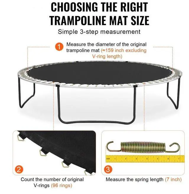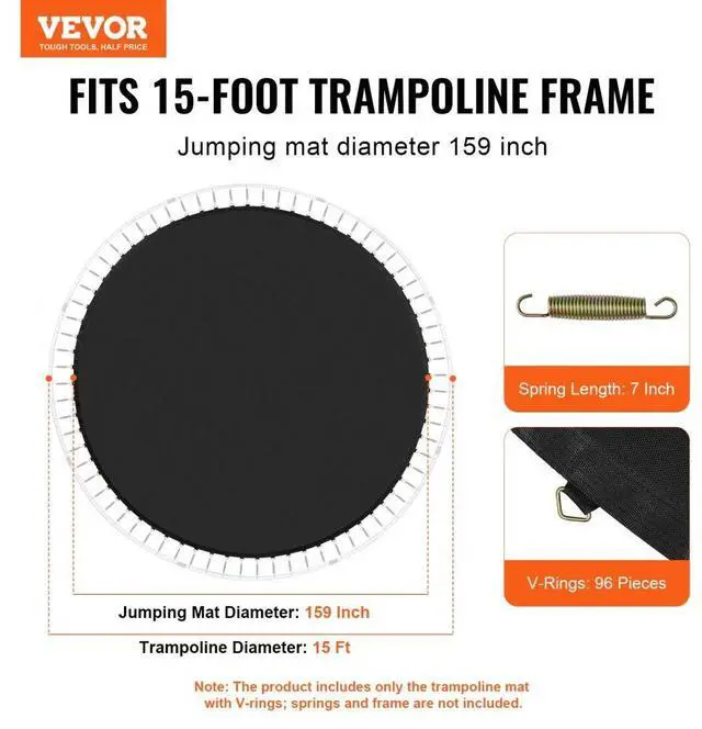 VEVOR Replacement Trampoline Mat Fits 15ft Frame 96 V-Rings 7" Spring Length