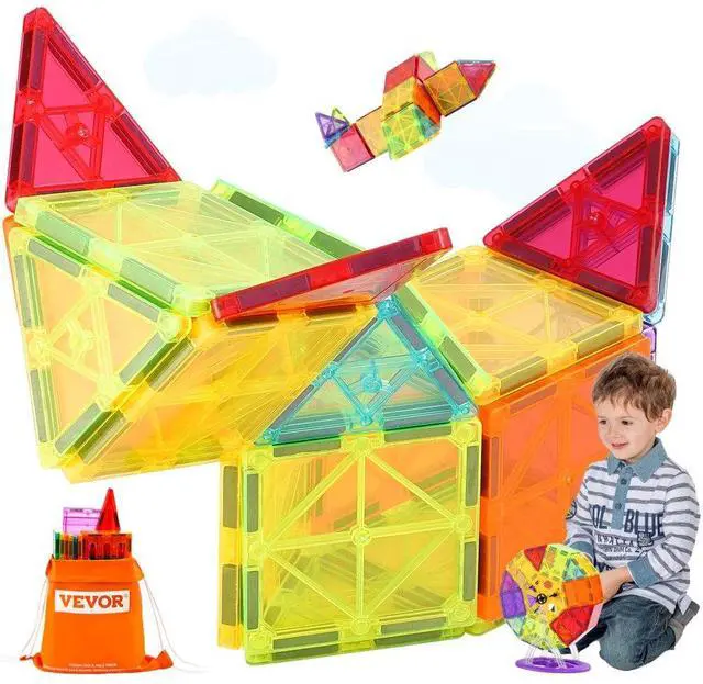 VEVOR Magnetic Tiles Magnetic Building Toy 180 PCS Magnet Blocks for Kids 3D Set