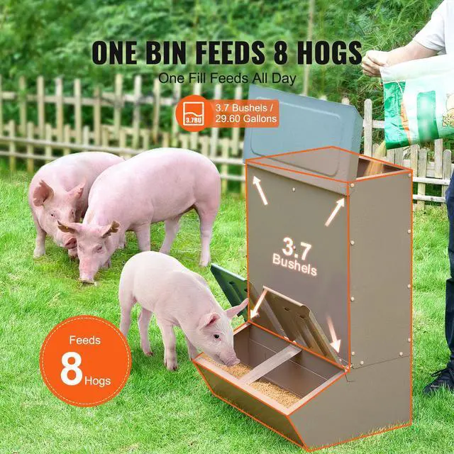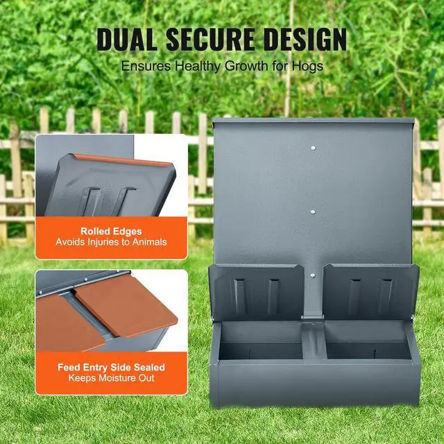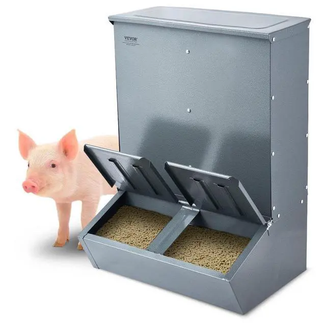 • VEVOR Hog Feeder 3.7 Bushel Metal Double Door Pig Feeder Feeding up to 8 Hogs