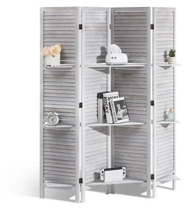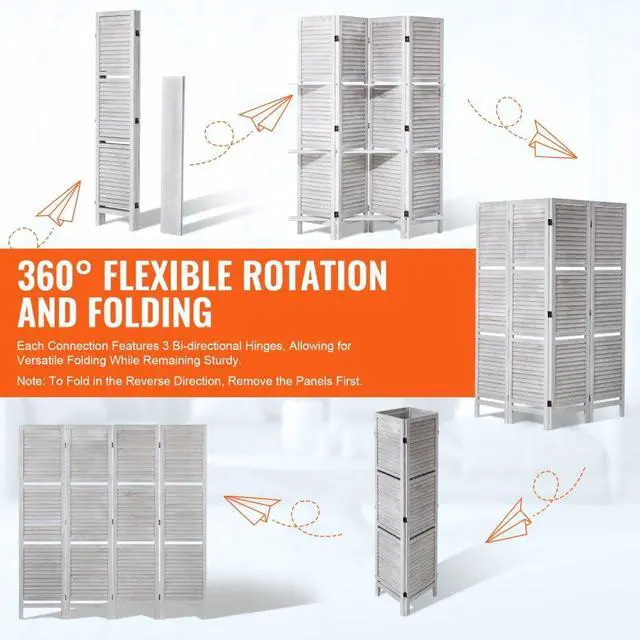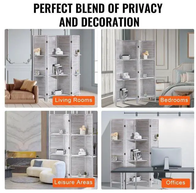 VEVOR Wood Room Divider, 4 Panel Wood Folding Privacy Screen, 66.9 Inches Tall Indoor Louvered Partition Divider, Portable Decoration Screen, for Room Separation, Home, Office, Restaurant & Bedroom