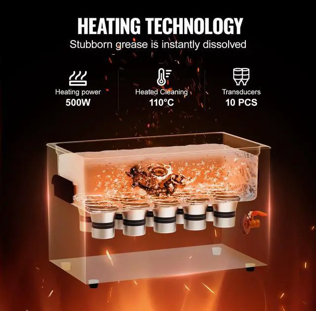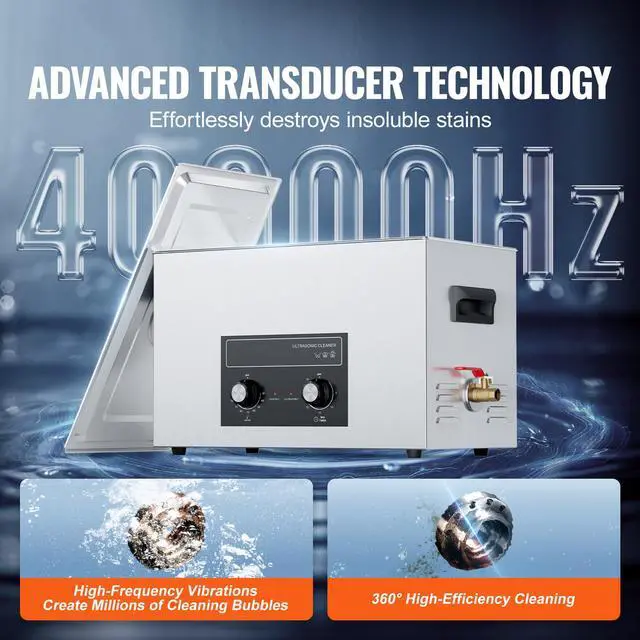 Powerful Cleaning Performance: The VEVOR Ultrasonic Cleaner operates at an ultra-high frequency of 40kHz, generating millions of tiny bubbles that explode in water, releasing strong cleaning energy. This energy penetrates every crevice, thoroughly removing stubborn stains from delicate parts, ensuring no area is left uncleaned.