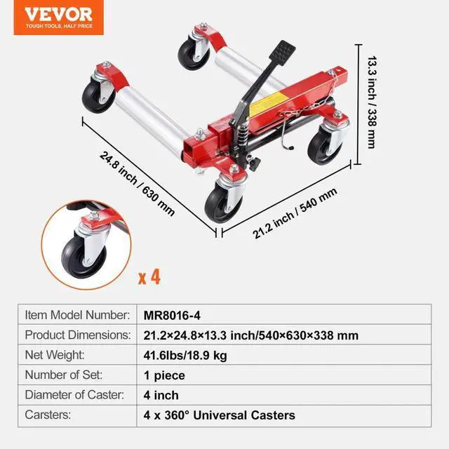 VEVOR Wheel Dolly Heavy Duty Vehicle Positioning Tire Jack Car Lifter 1500 Lbs