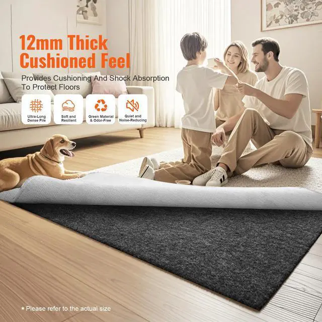 VEVOR Rug Pad Gripper 9' x 12' Protective Carpet Pad 0.47" Thick for All Floors