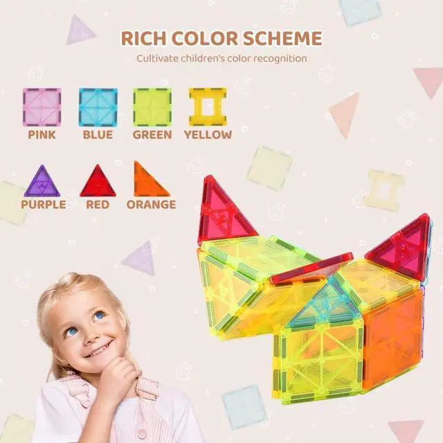 VEVOR Magnetic Tiles Magnetic Building Toy 32 PCS Magnet Blocks for Kids 3D Set