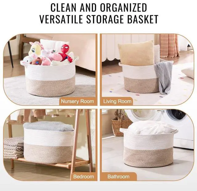 VEVOR Cotton Rope Storage Basket 67L Woven Blanket Basket 20 x 20 x 13 in