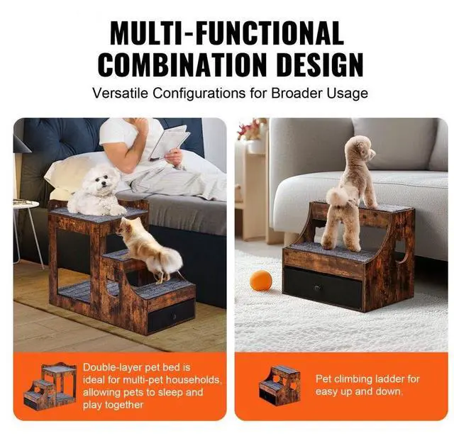 VEVOR Pet Bunk Bed with Stairs Dog/Cat Window Perch with Storage Indoor Brown