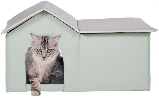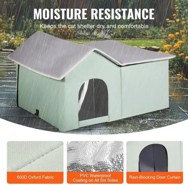 VEVOR Heated Cat House Foldable Kitty Shelter with Heated Pad Green Large