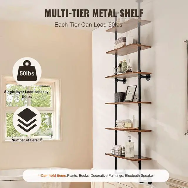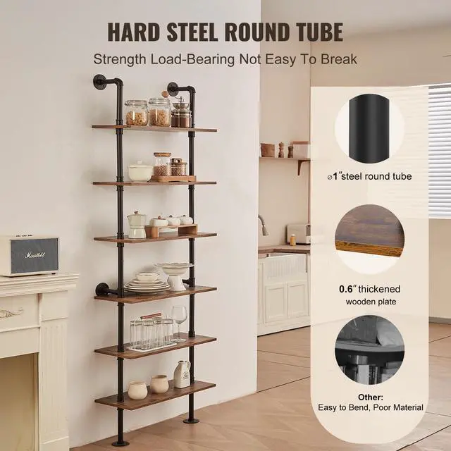 • VEVOR Industrial Pipe Shelf 6 Tier 24x9.84in Wall-Mount for Kitchen Bedroom