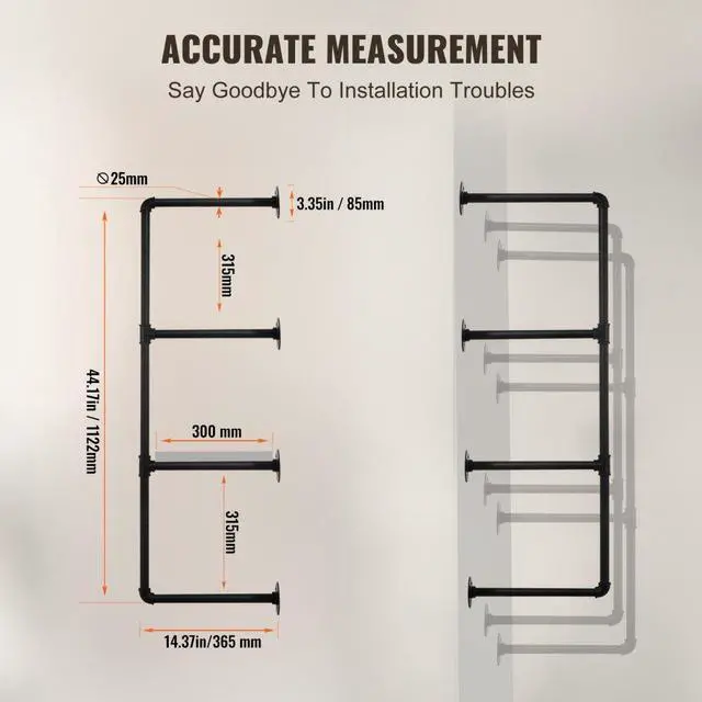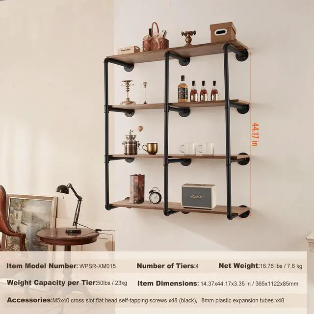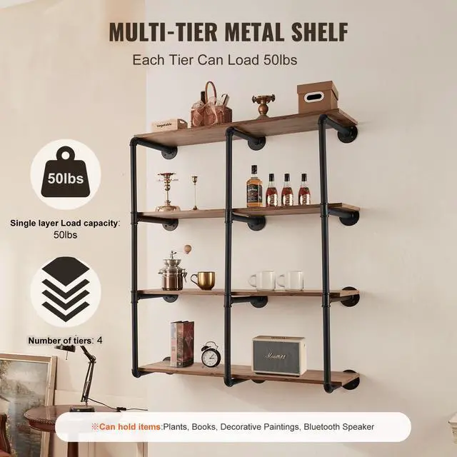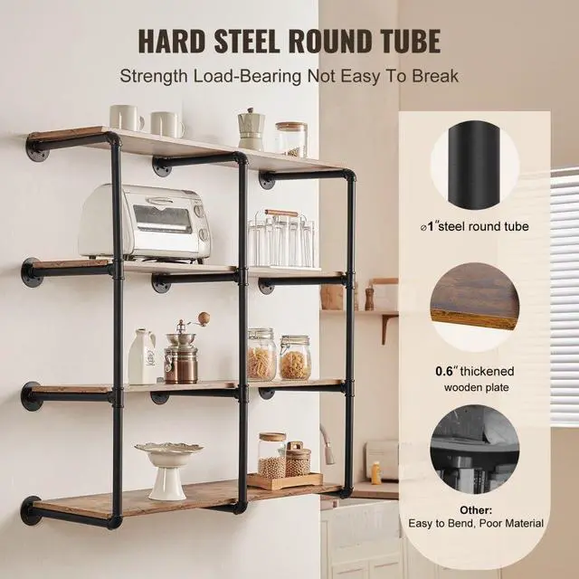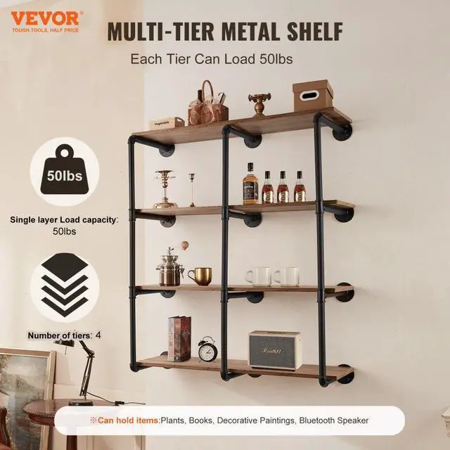 • VEVOR Industrial Pipe Shelf 4 Tier 3PCS 11.8in W Wall-Mount Planks NOT Included