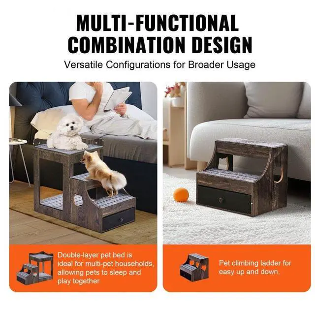 VEVOR Pet Bunk Bed with Stairs Dog/Cat Window Perch with Storage Indoor Gray