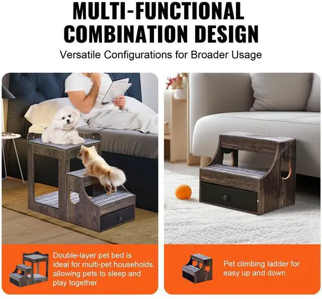 VEVOR Pet Bunk Bed with Stairs Dog/Cat Window Perch with Storage Indoor Gray