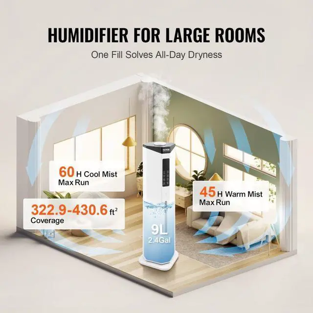 VEVOR Commercial Humidifier 2.4 Gal Cool/Warm Mist for 430.6 Sq Ft Top Refill
