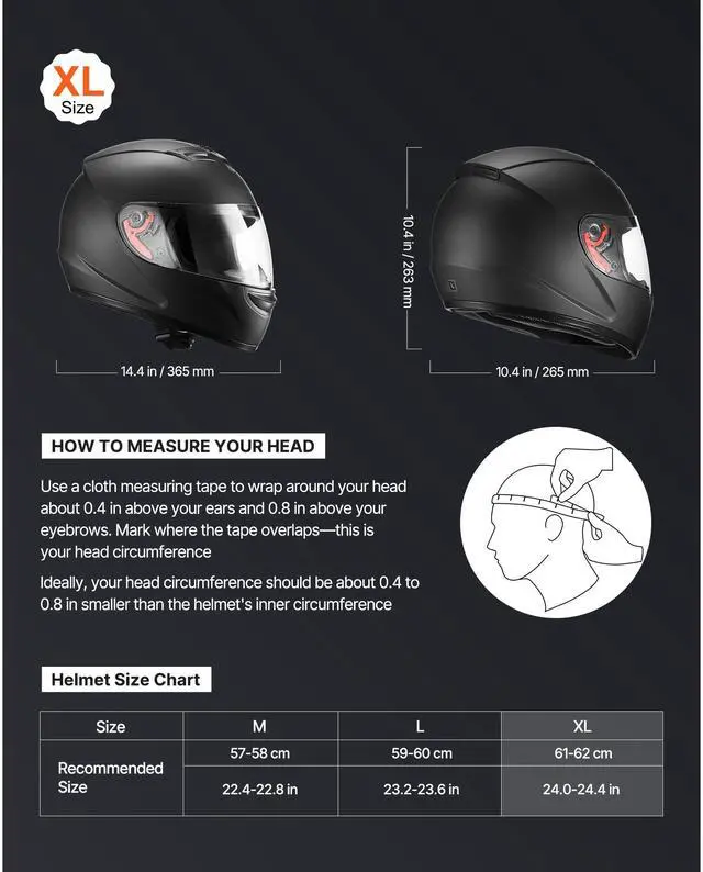 Product Dimension: 14.4 x 10.4 x 10.4 in/365 x 265 x 263 mm,Size: Full-Face Helmet-Size XL,Item Model Number: WLT-111,Helmet Size: 24.0-24.4 in/61-62 cm,Net Weight: 3.2 lbs/1.45 kg(Include all accessories)