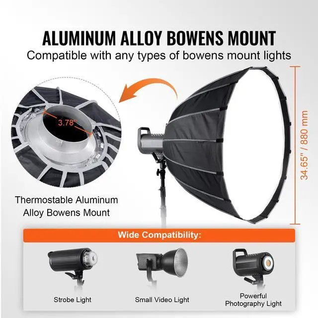 VEVOR Parabolic Softbox 33 in Quick Release & Quick Fold & Portable