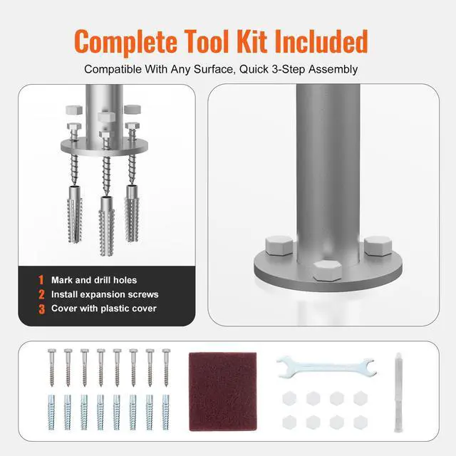 Pool Handrail 36 x 13 inch Aluminum with Base Plate for Indoor/Outdoor
