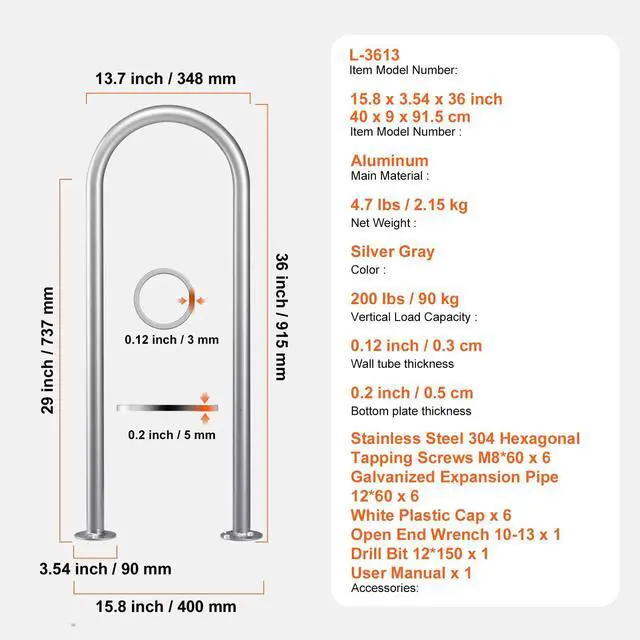 Color: Silver Gray,Item Model Number: L-3613,Vertical Load Capacity: 220 lbs / 100 kg,Net Weight: 4.7 lbs / 2.15 kg,Main Material: Aluminum,Product Size: 15.8 x 3.54 x 36 inch / 400 x 90 x 915 mm