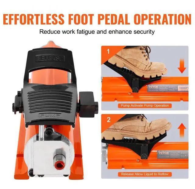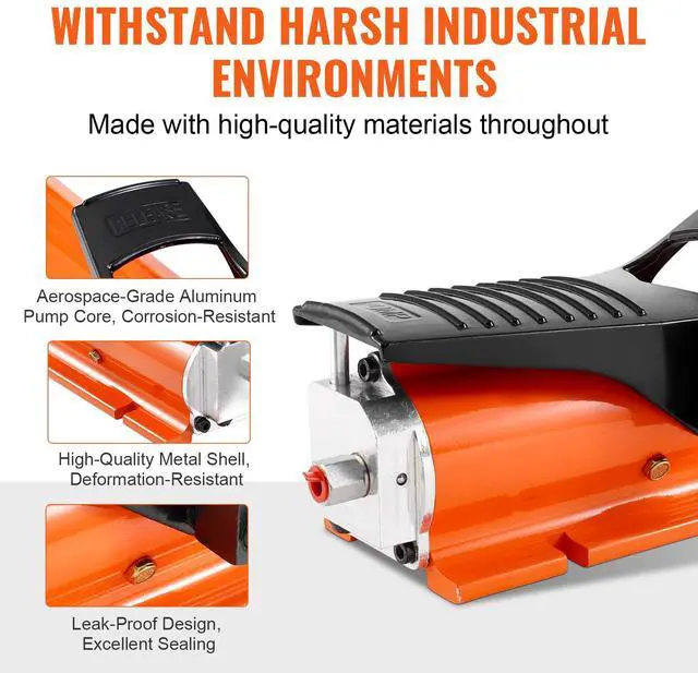 VEVOR 10,000PSI Air Hydraulic Pump, 0.18 Gal Reservoir, NPT 3/8 in Oil Outlet, NPT 1/4 in Inlet, Metal Shell Air Actuated Treadle Foot Pump, for Precision Industrial Machinery & Aerospace Equipment